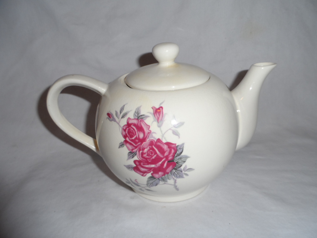 Topflite Teapot with Two Red Roses Two Rosebuds One Piece Handle