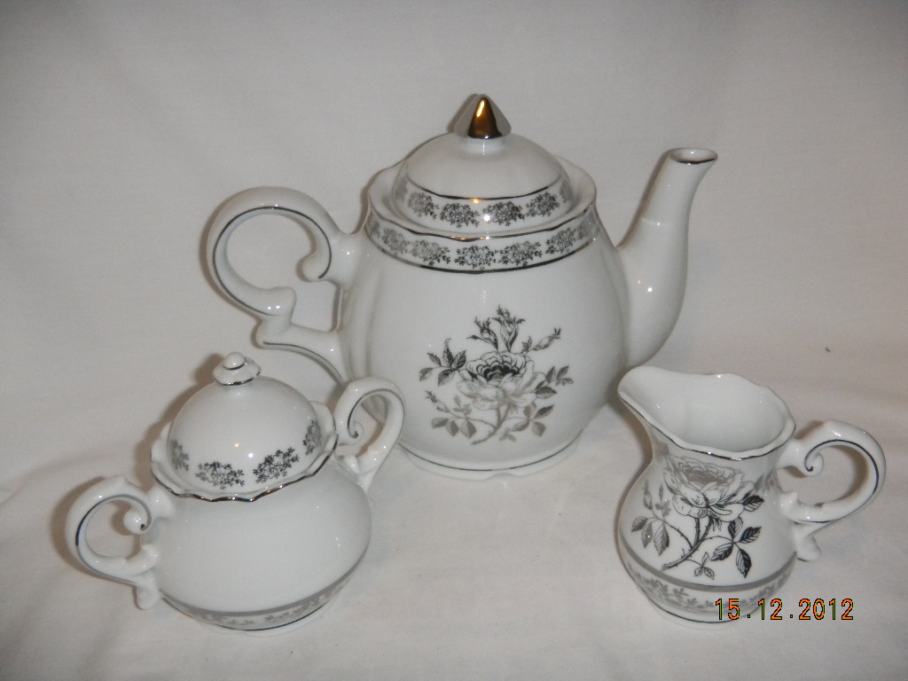On bottom jug and bowl: ' Porcelaine Chatillon Fine. AB-181 ', and same Norcrest label as on teapot. |