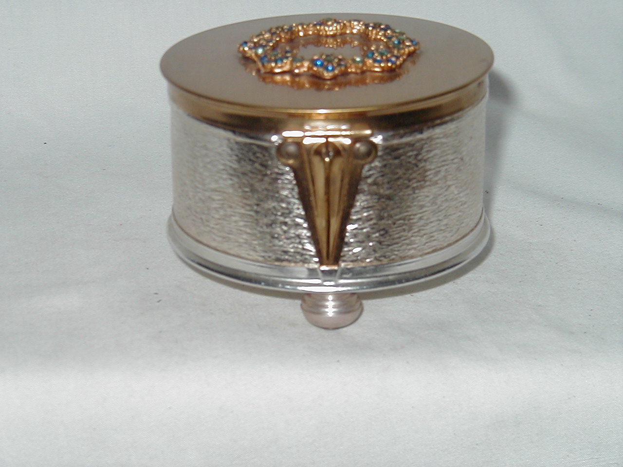 Fair, one blue stone top lid missing, lining lid partly loose. |