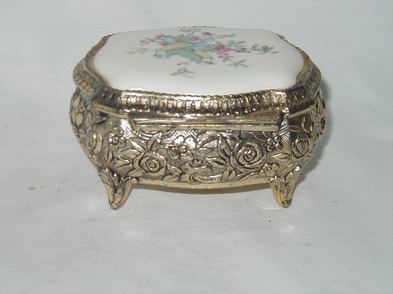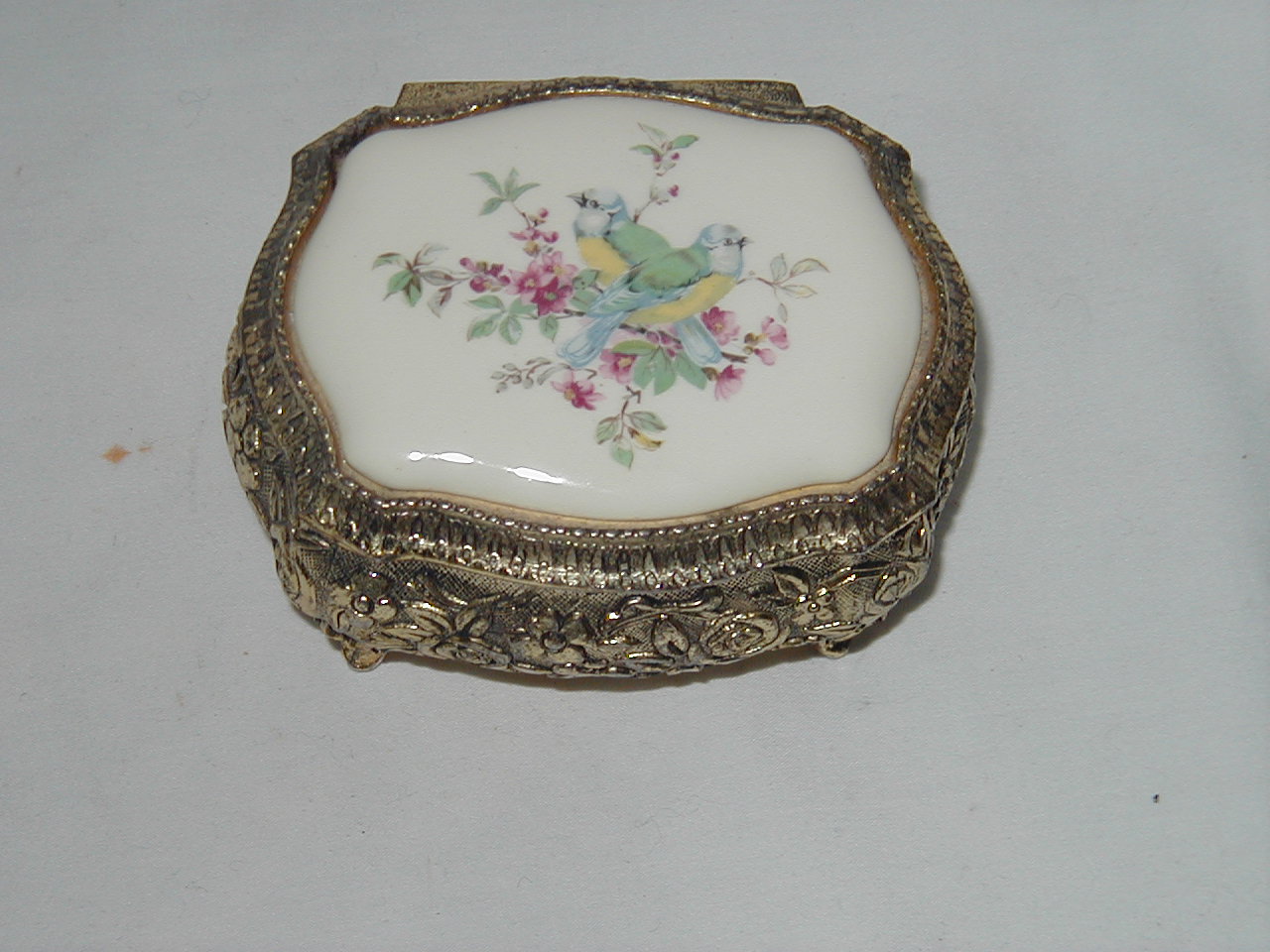 Metal with porcelain plate on lid |