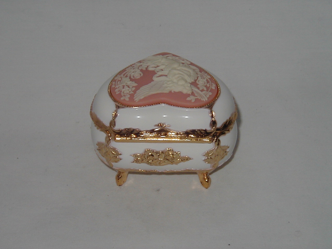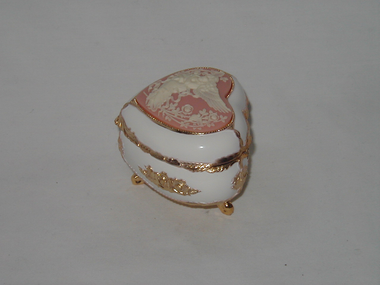 White Metal with cameo and 'gold' trim. Cloth lining. |