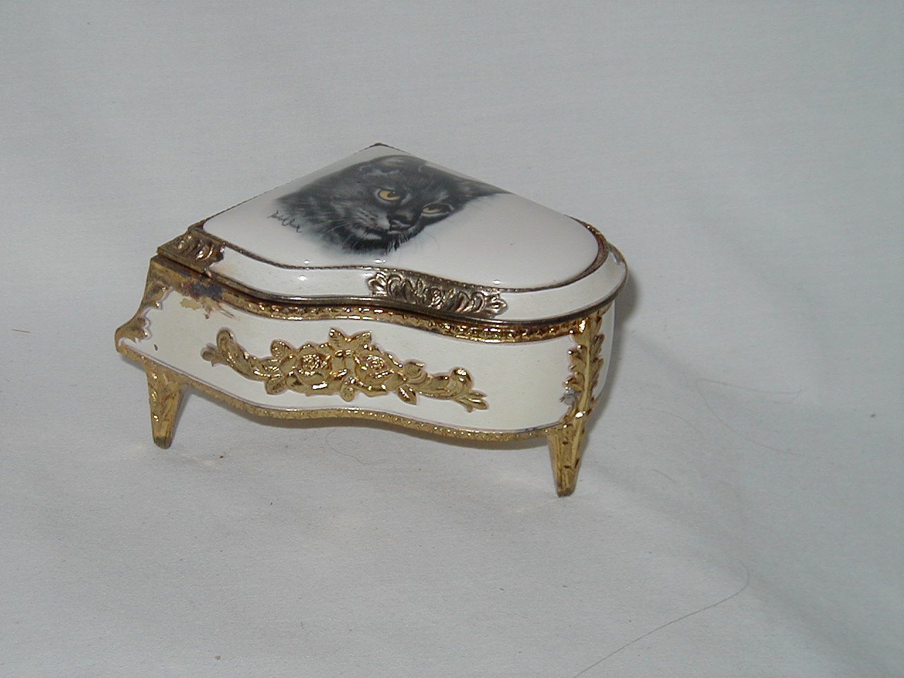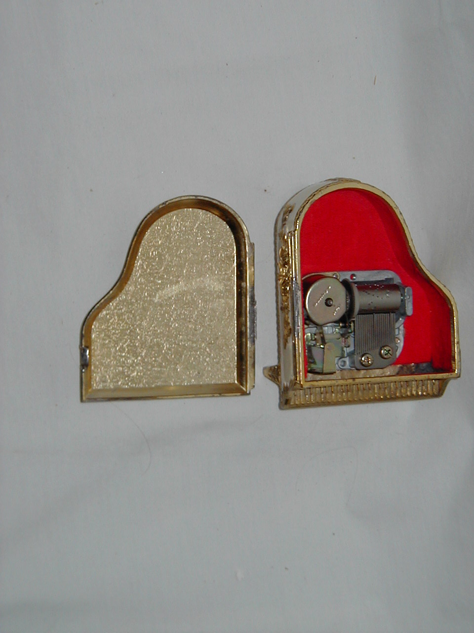 Minor, lid unhinged, standup lid missing, cover music mechanism missing. |