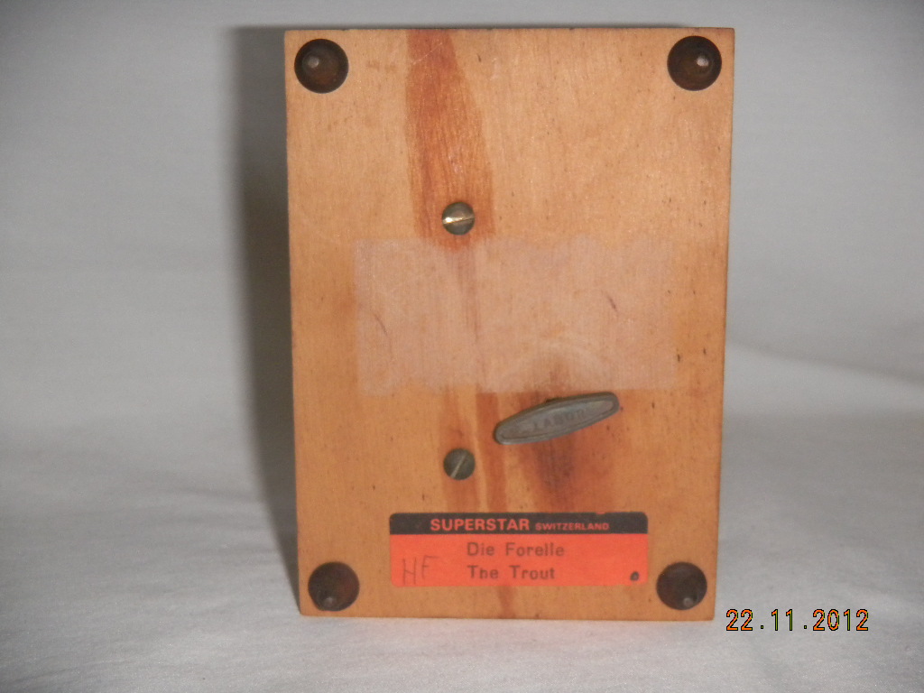 Key, metal, in bottom. Althougfh music mech Superstar (=Reuge), key marked ' Lador '. |