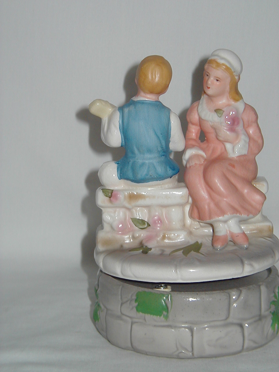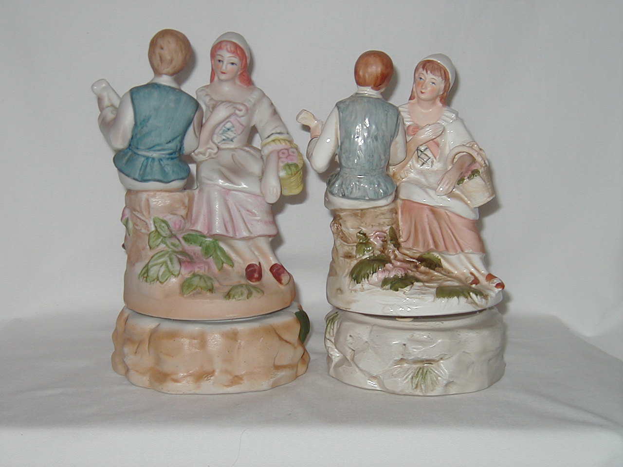 Pair of Girl with Head-Shawl and Boy with Hat Glazed
