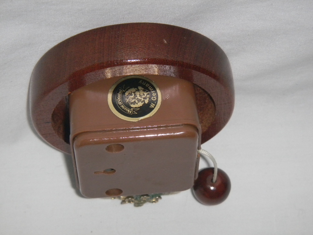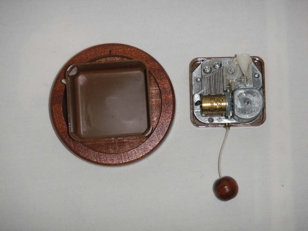 Wood with plastic cover for music mechanism |