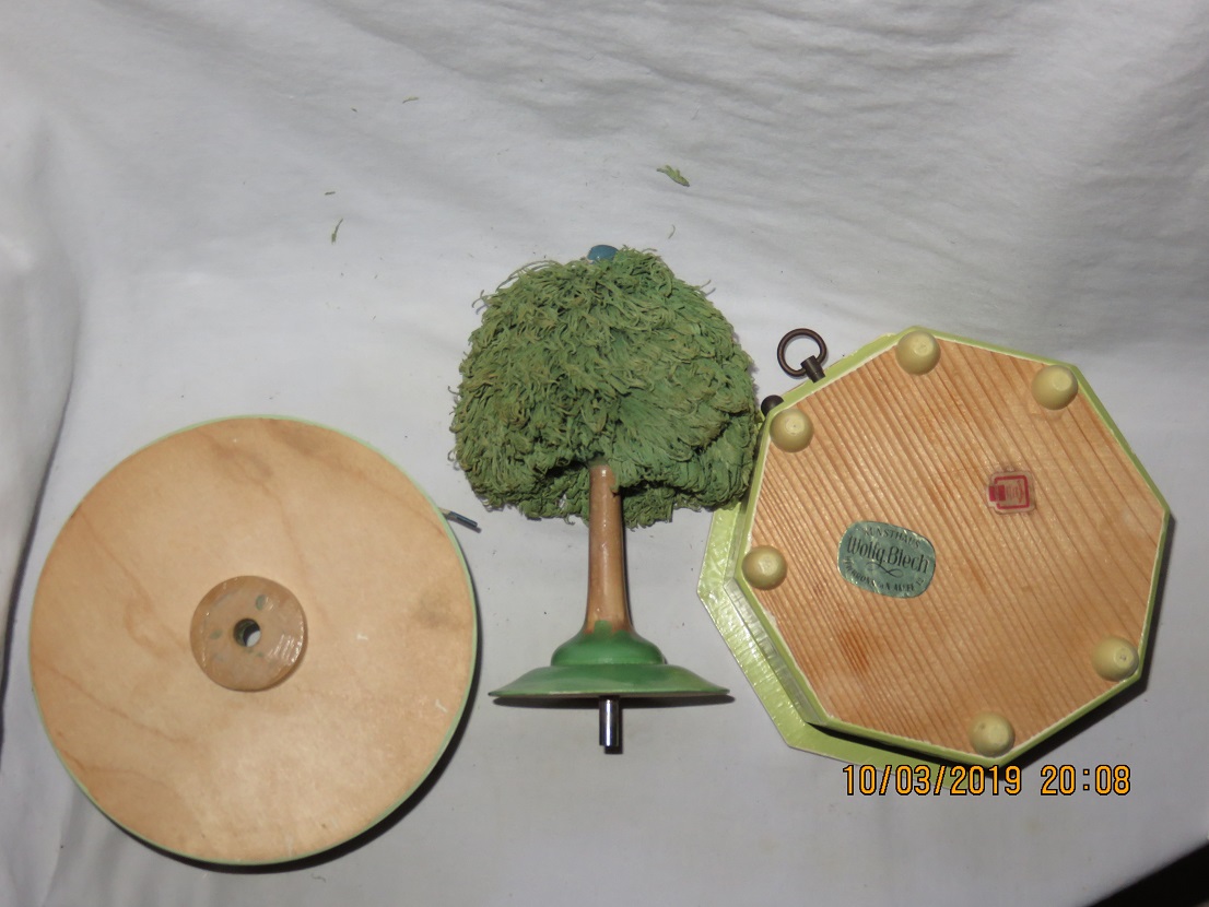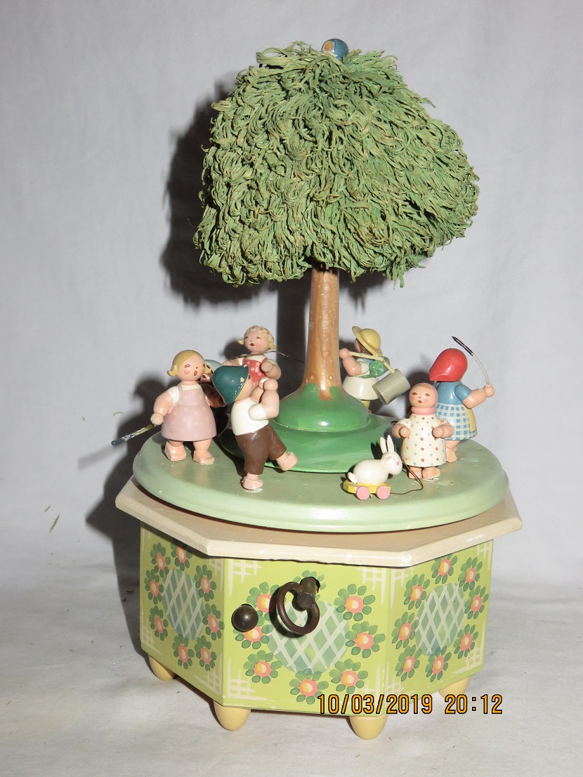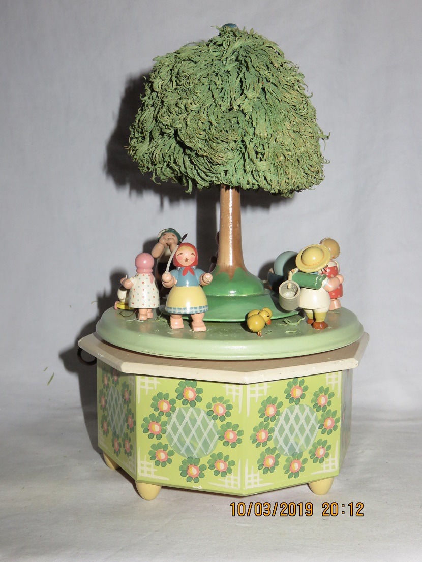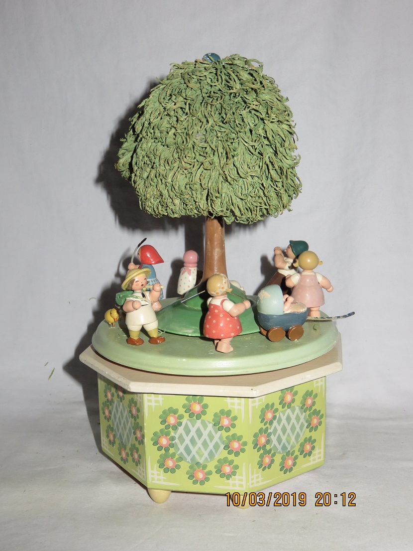 Platform with figures rotates around tree, with music. |