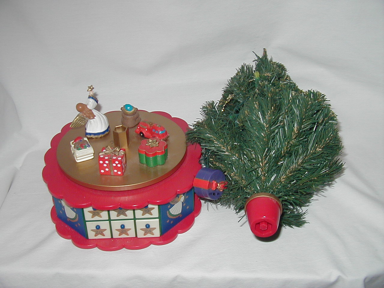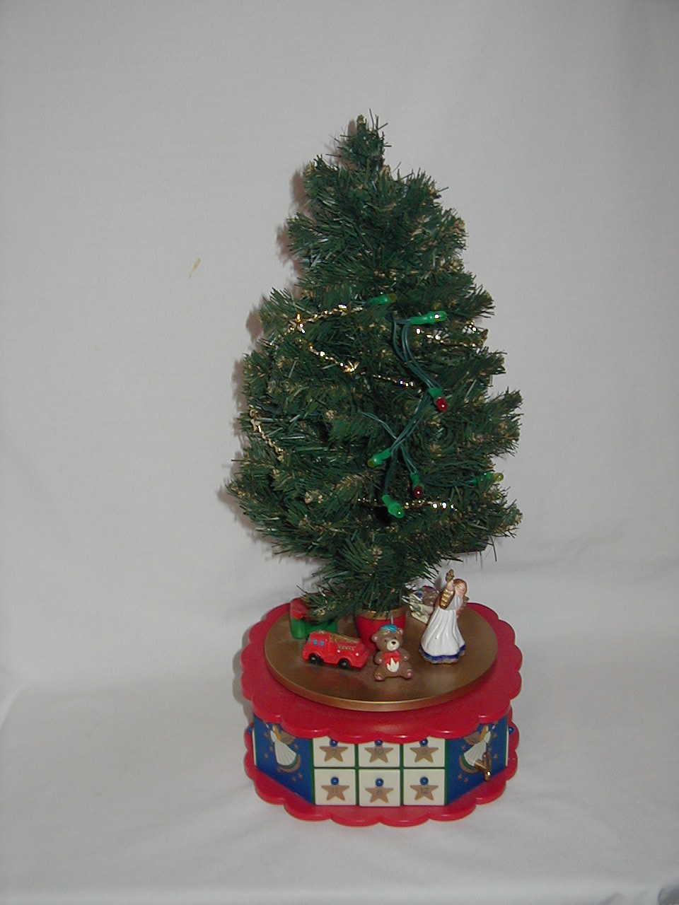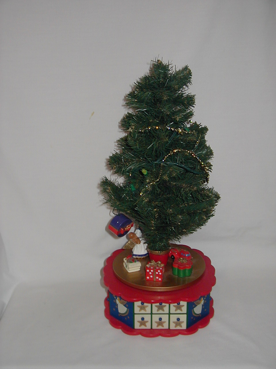 Tree rotates on pedestal with music. |