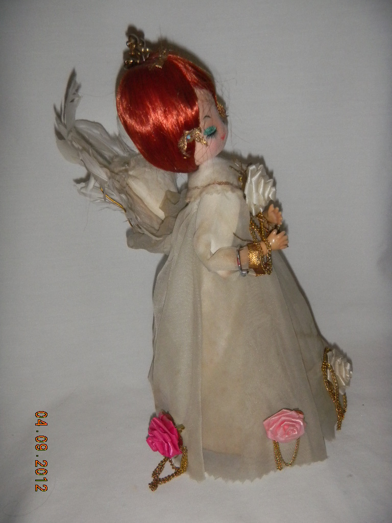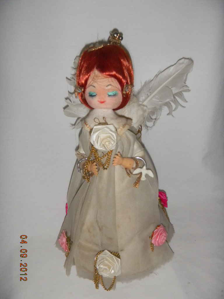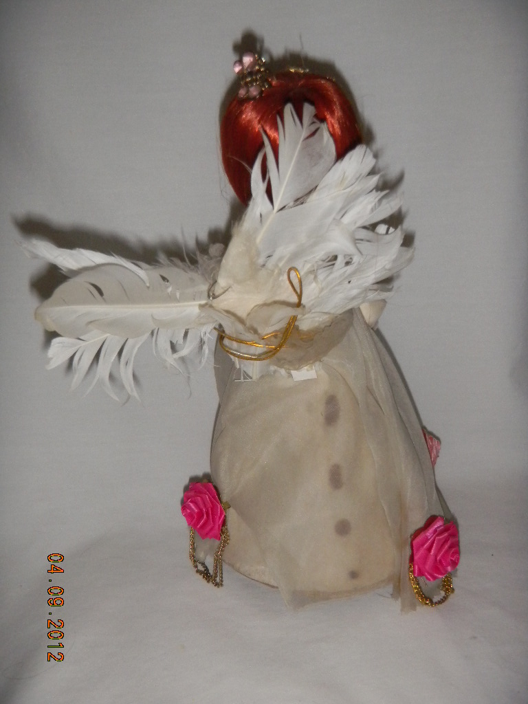 This is the only one i know of where feathers were used for wings; looks original (despite safety pin!). |