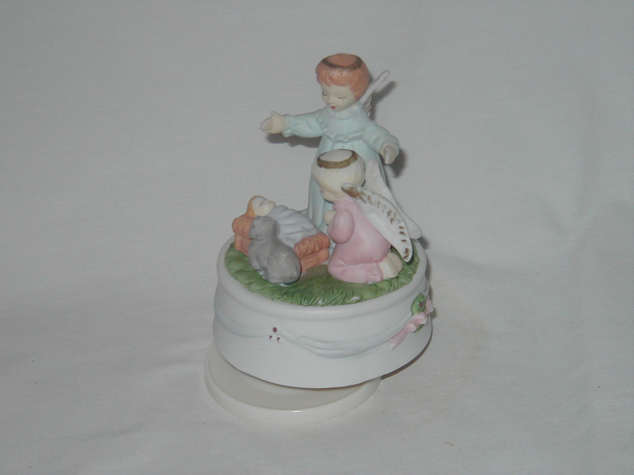 Exactly same mold as A 171 010, but somewhat different coloring, sheep grey in stead of white, crib dark brown in stead of lightbrown, etc.