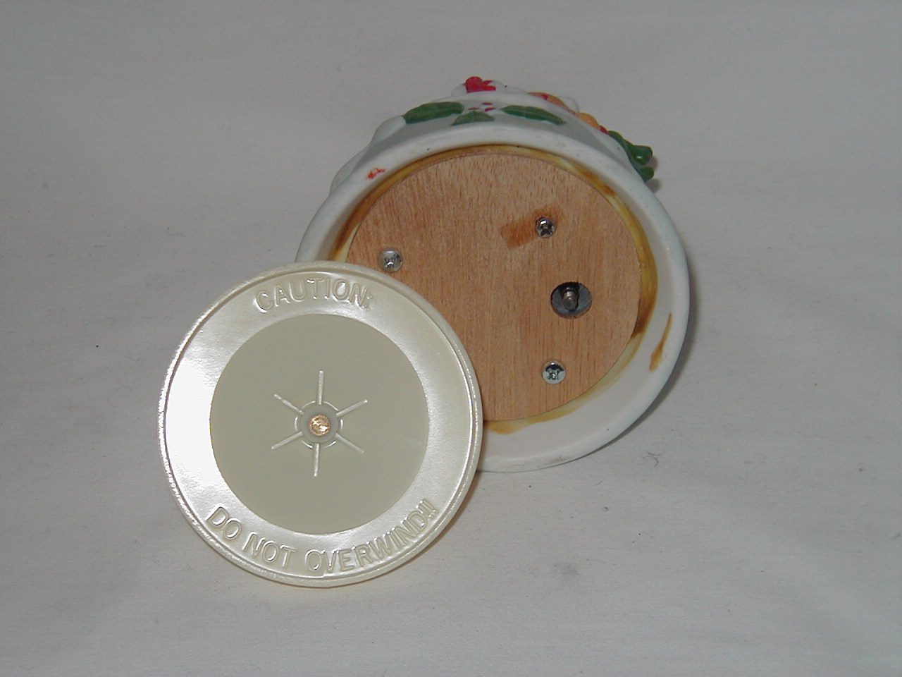 Yes, plastic, ' Caution: Do not overwind!! '. |