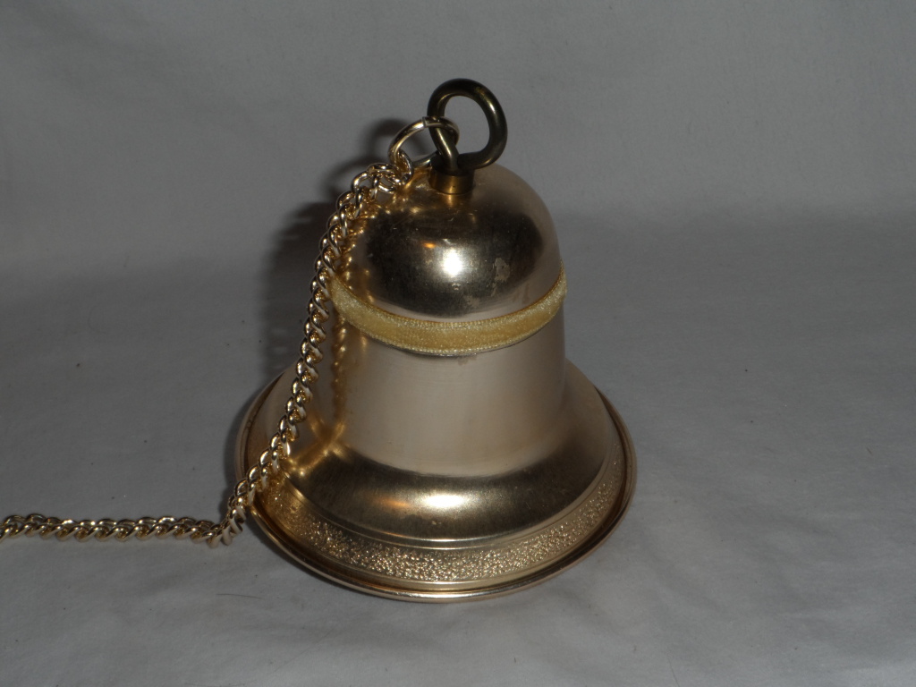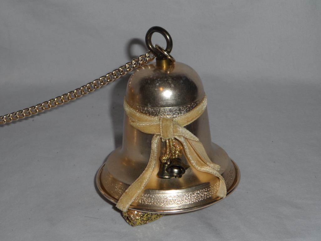 Seems to be the same bell as A 022 005, but morde up and one of string of 3 bells; this looks original.. Mech. , metal, to wind from ' Esaki EL-1000 Japan '. |