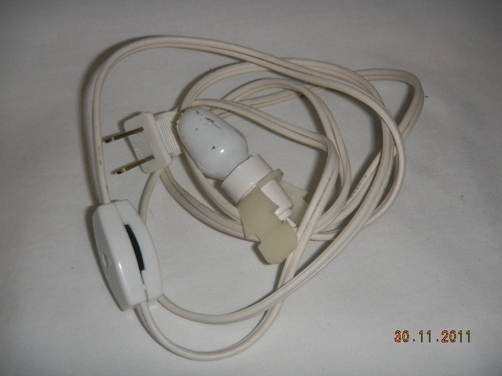 Cable is detachable, clips in on hole on back. Cable mentions: ' Yazaki 7363-1230, 01,7.5W AC.120 v '. On light switch: ' T 41-8675 r$d, 3A-250V '. |
