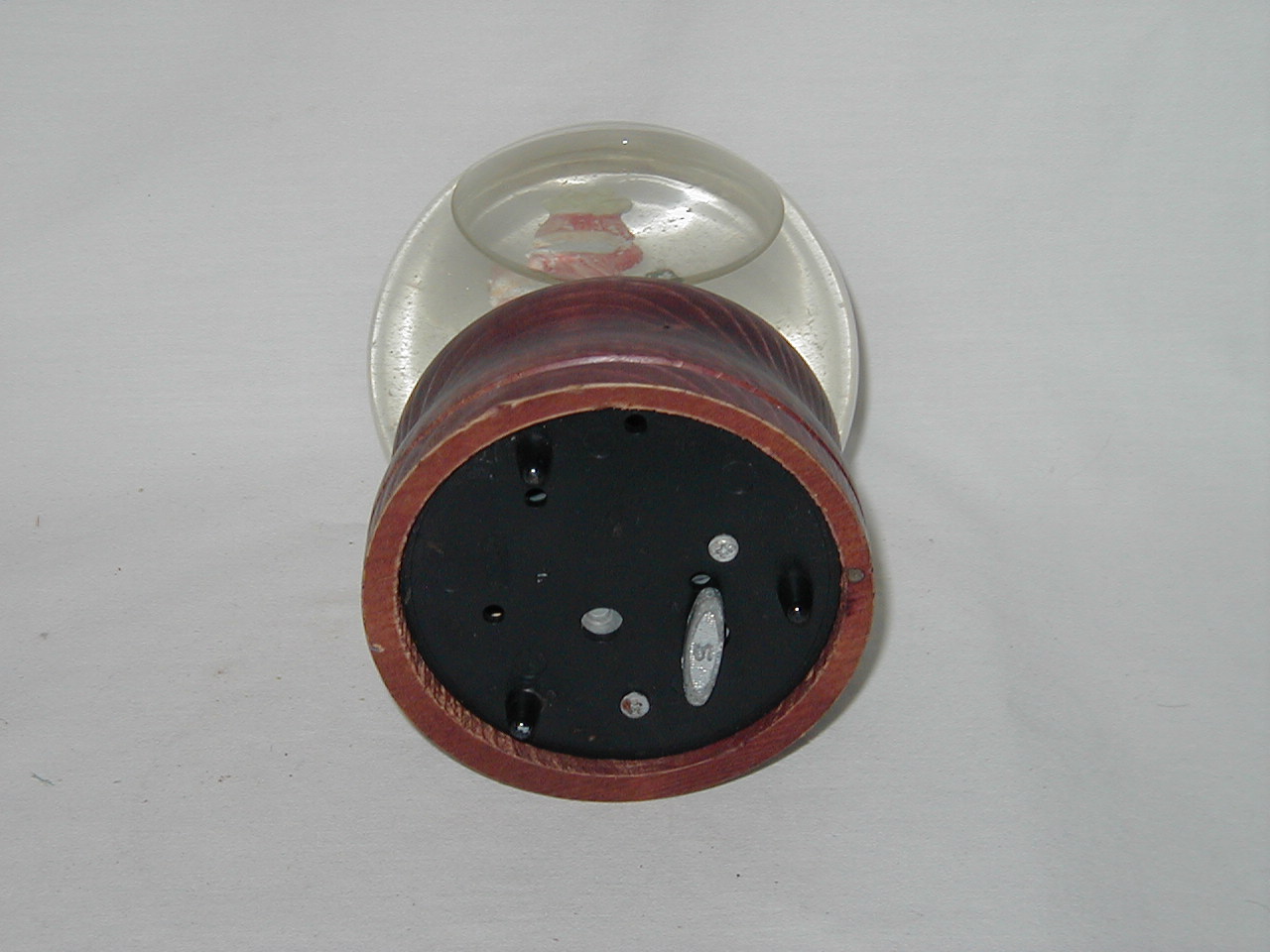 Wood, glass, plastic bottom cover. |