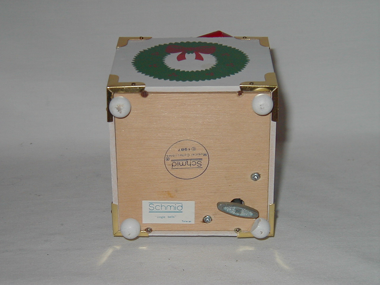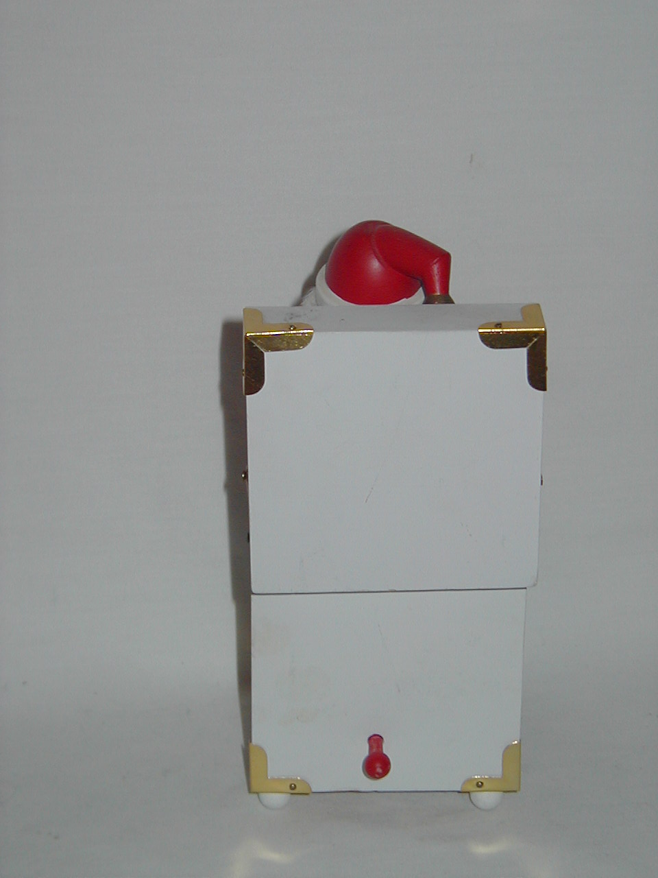 For a Schmid the small wooden pin to move Santa is very vulnerable and not worthy of the name (and not the 'precision instrument' claimed by Schmid). Santa reglued to bottom box and does NOT move. Santa looks like a nutcracker, but is not. |