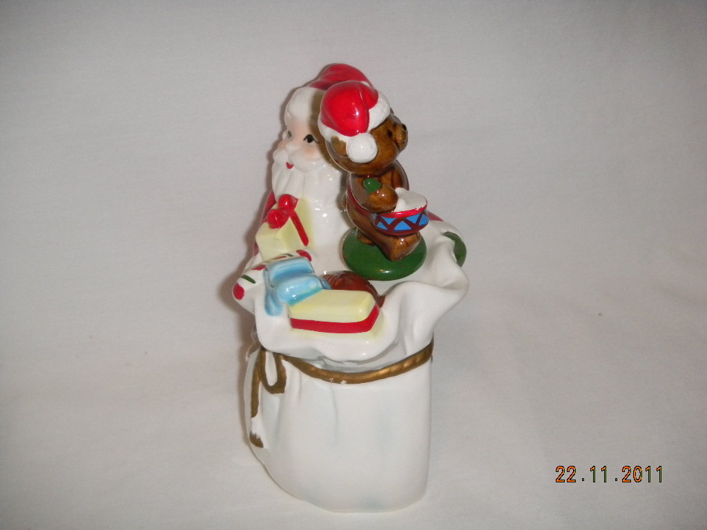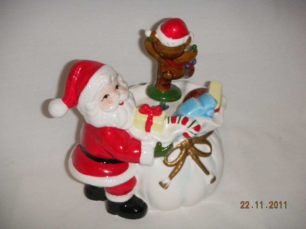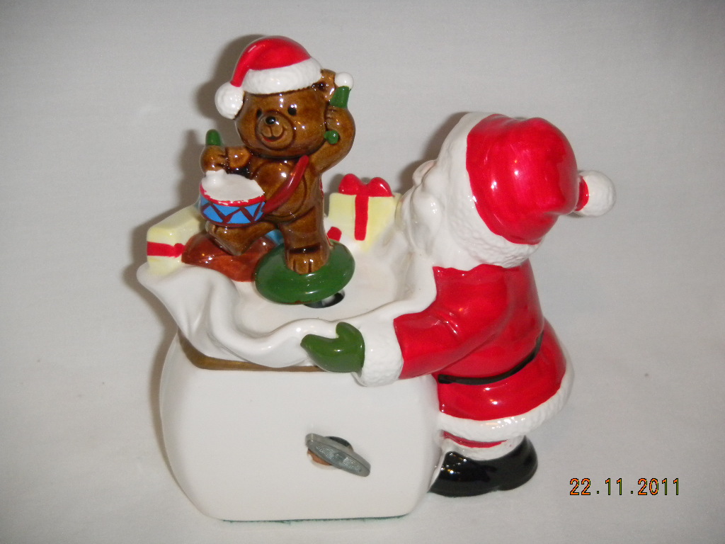 Bear on top bag rotates with music. |