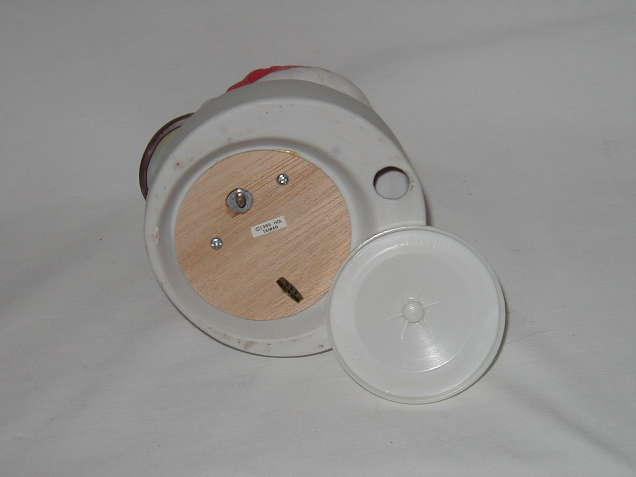 Yes, plastic, ' Caution: Do not overwind!! '. |