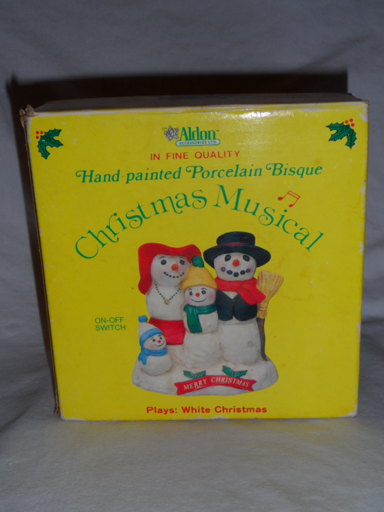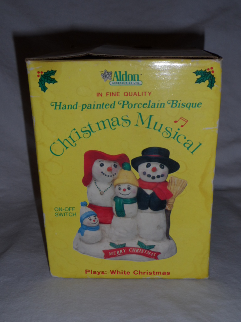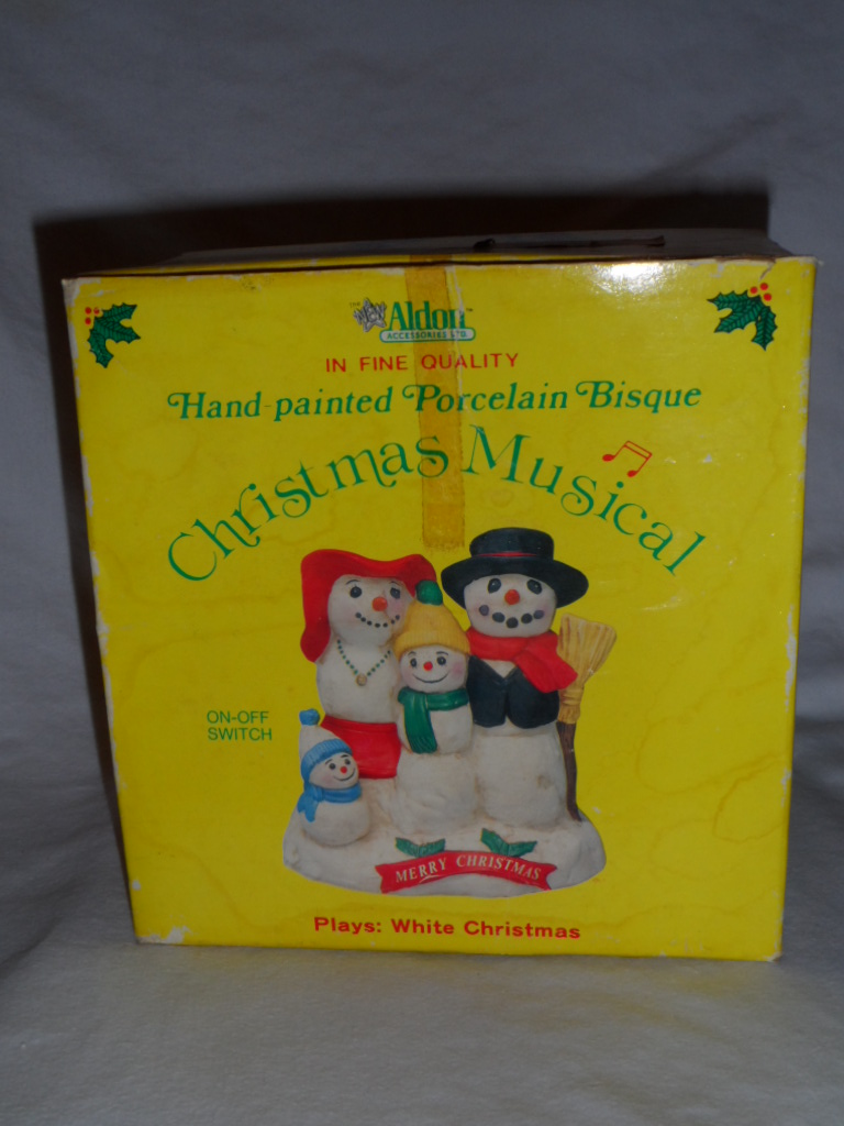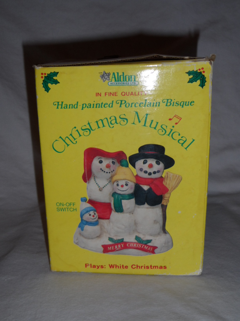 ' Handpainted Porcelain Bisque. Christmas Musical. Merry Christmas (on banner). On-Off Switch. '.x |