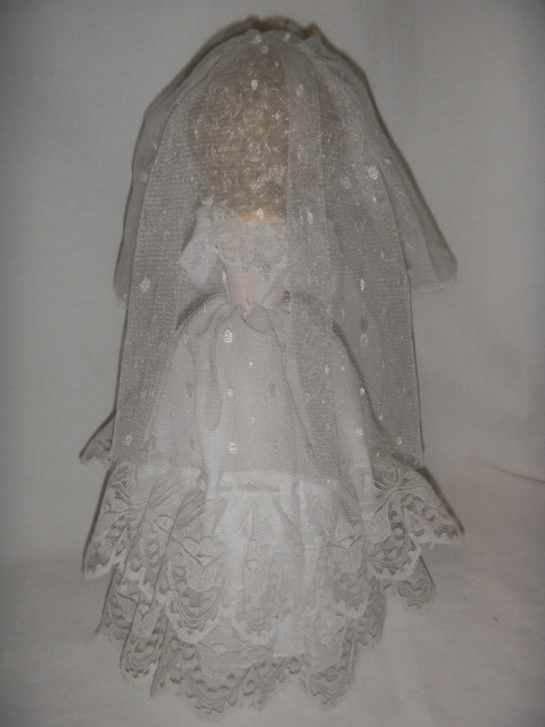 Cloth and plastic head, hands on foam body. |