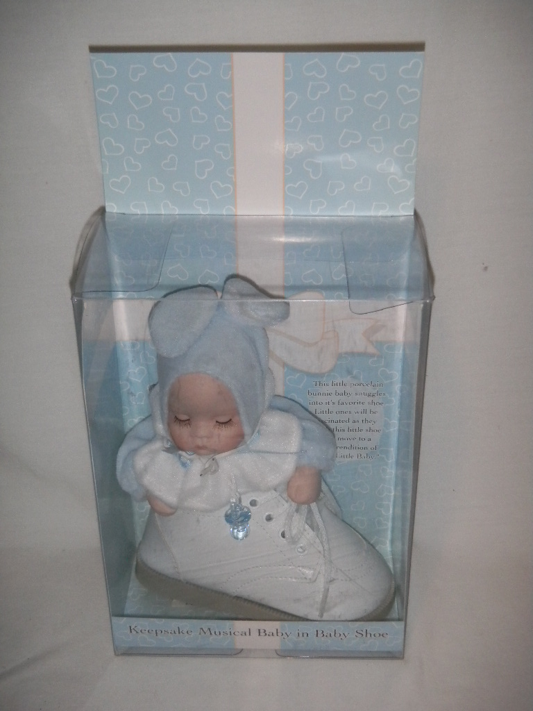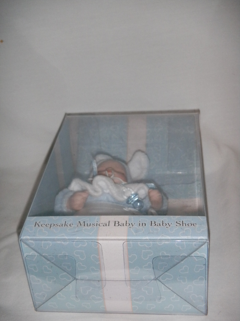 Keepsake Musical Baby in baby Shoe (box). LON-E (under foot) |