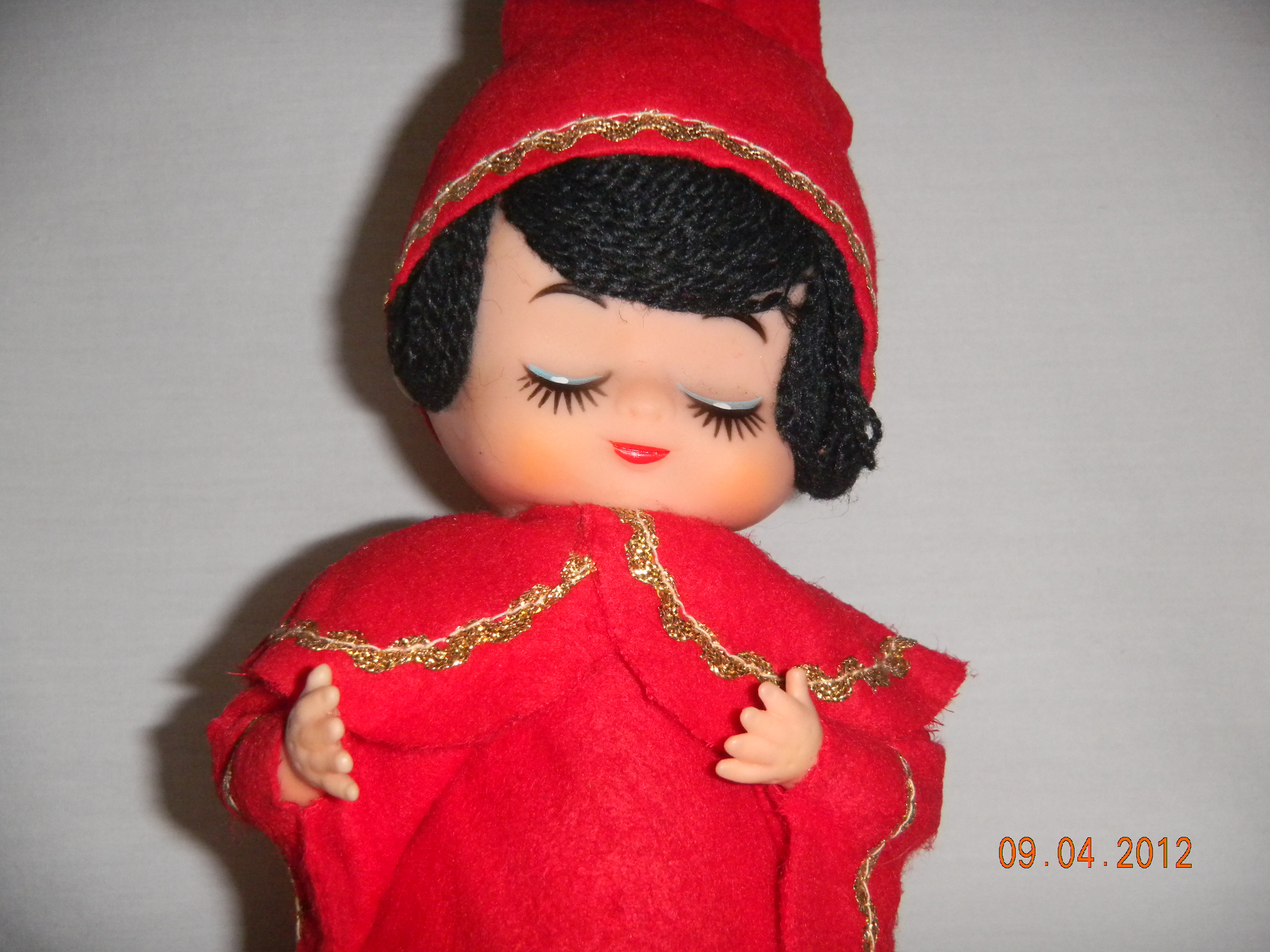 Musical Doll. Warning This is not a toy for children under 8 years. Boudoir doll for display only. Made in Korea. |