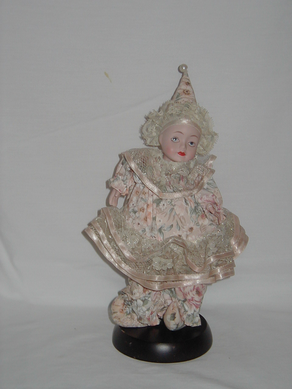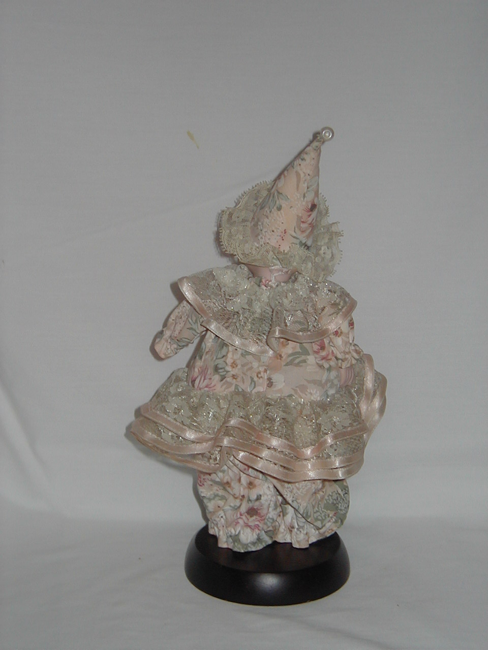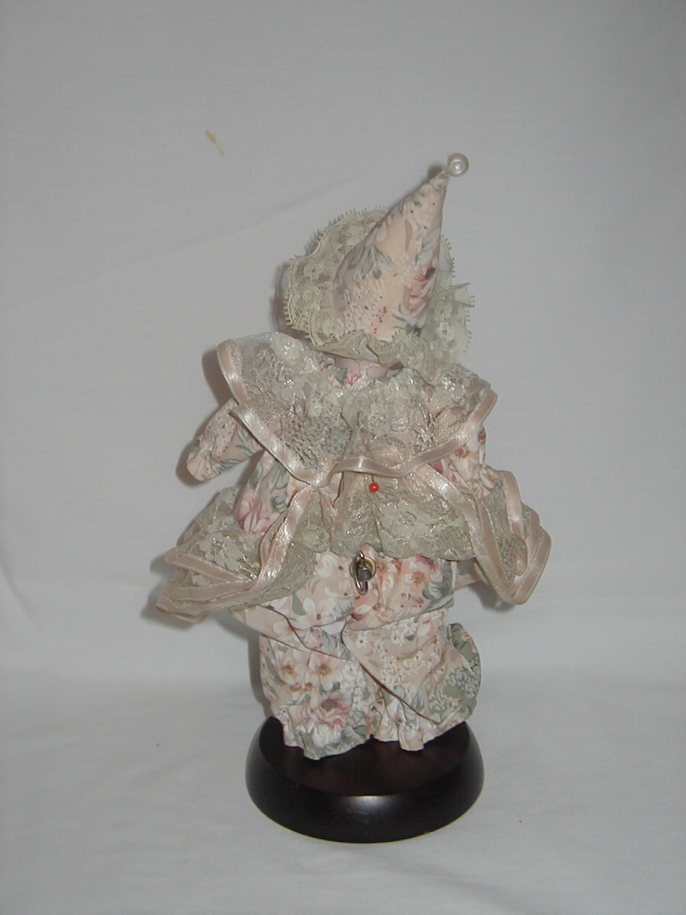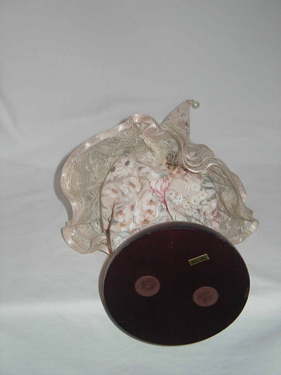Synthetic Fibers, wood bottom, plastic head/hands |