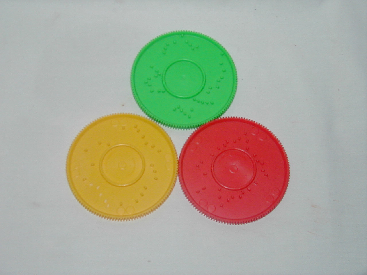 Insert one of the records in the small room in the yellow holder, turn the red handle clockwise and blow the trumpet and the music will sound. It can also be operated by blowing and playing with the 3 buttons on top (push down), blue button not working perfectly..