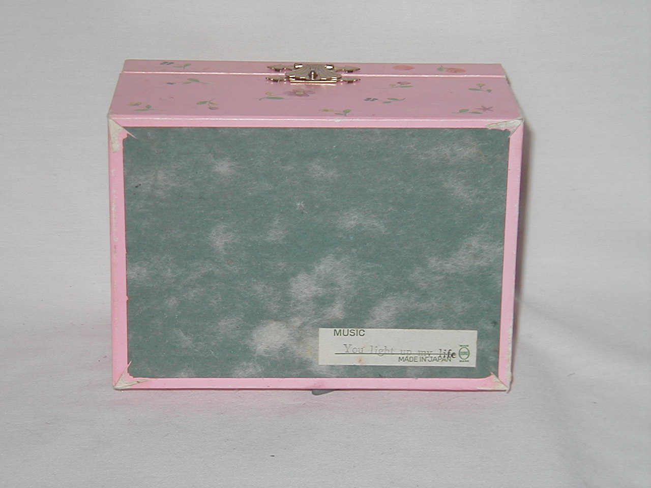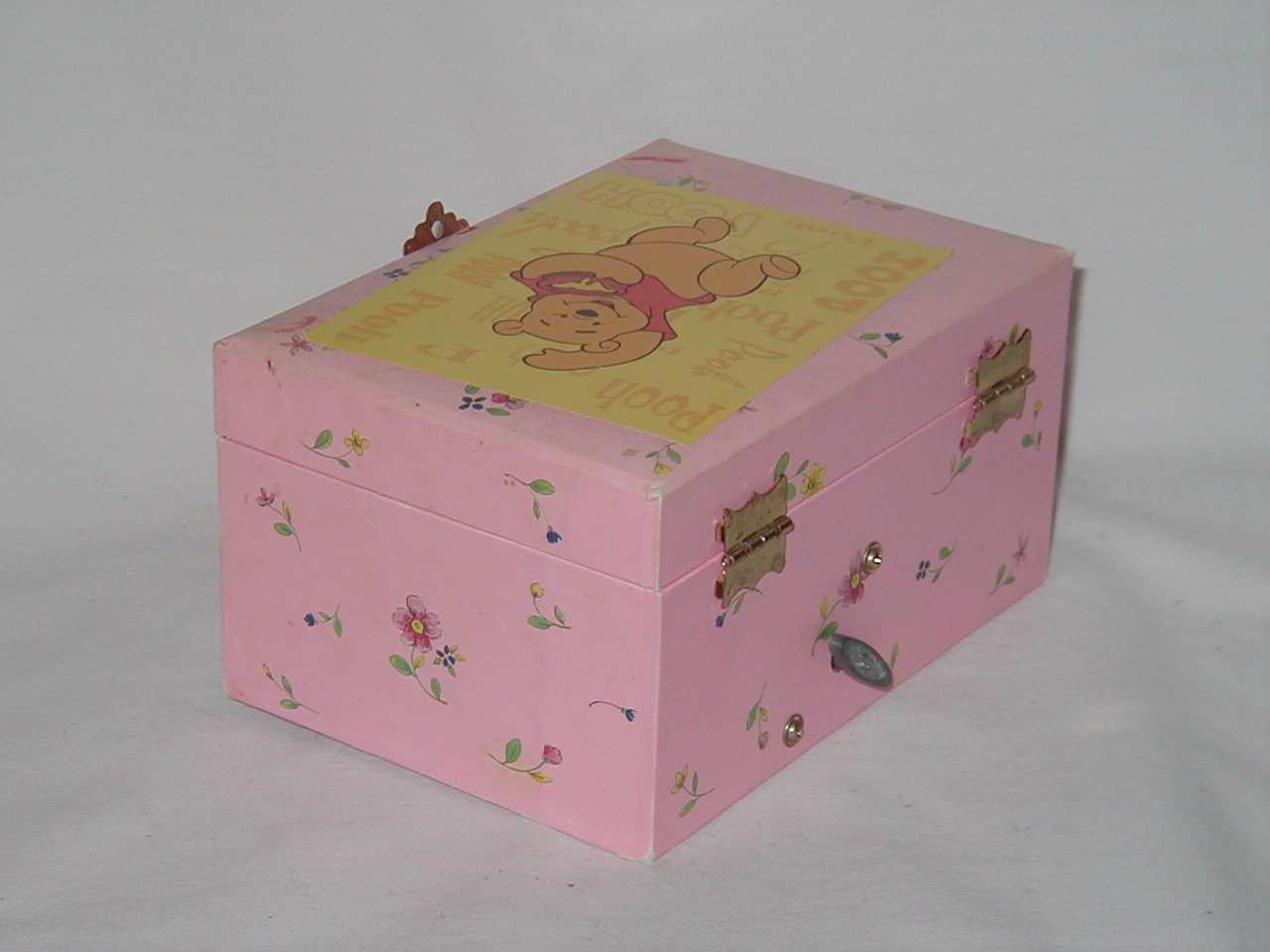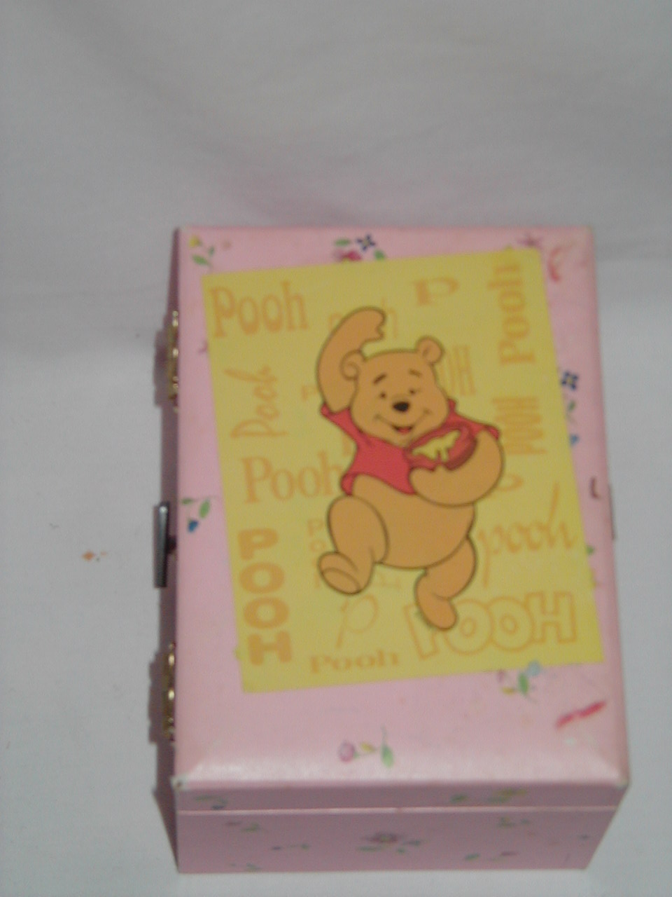 Somebody put a transfer of 'Pooh' on top lid, cannot be taken off without damaging top paper. |