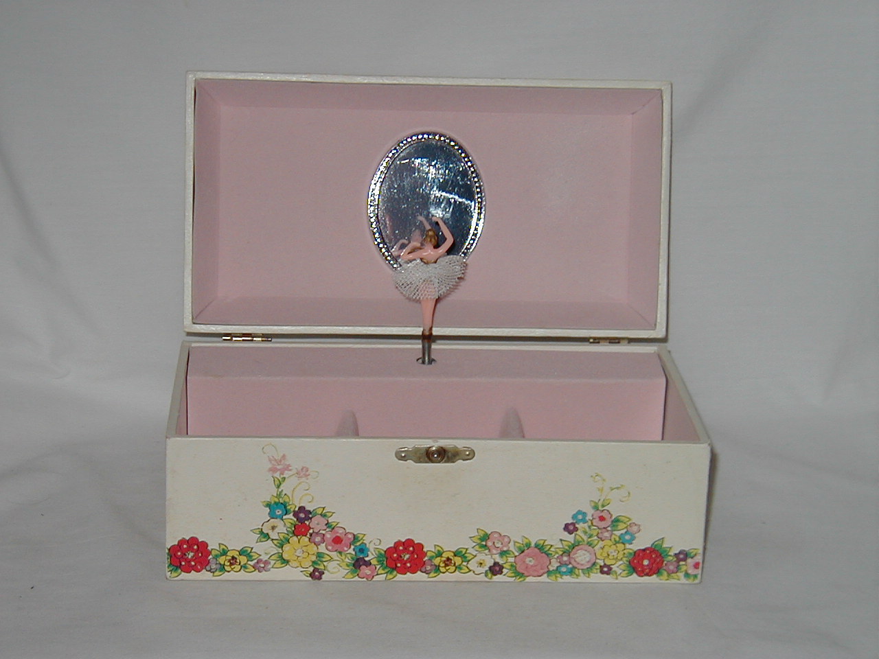 Open lid to start music, ballerina rotates. Ballerina is on/off switch. |