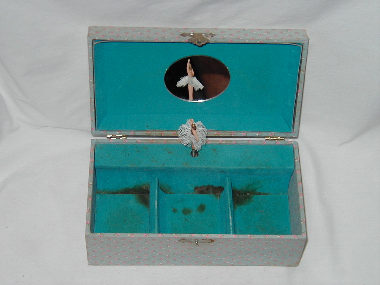 Open lid to start music, ballerina rotates. Ballerina is on/off switch. |