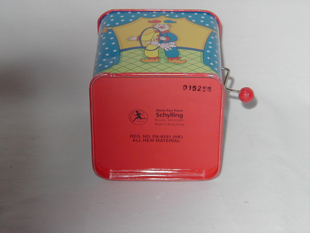 Also on box: ' 015258. Reg.No. PA-8291 (HK). All new material '.. Under lid: ' The lid will not stay closed until the song has played completely '. |