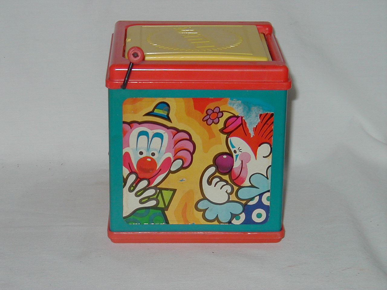 Jack -in -the -Box USA works, not Mexico. Turn wheel and clown pops out of box at some time. |