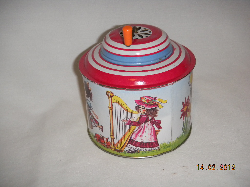 Lorenz Bolz Round Tin with Girls Playing Instruments Dancing (Larger) |
