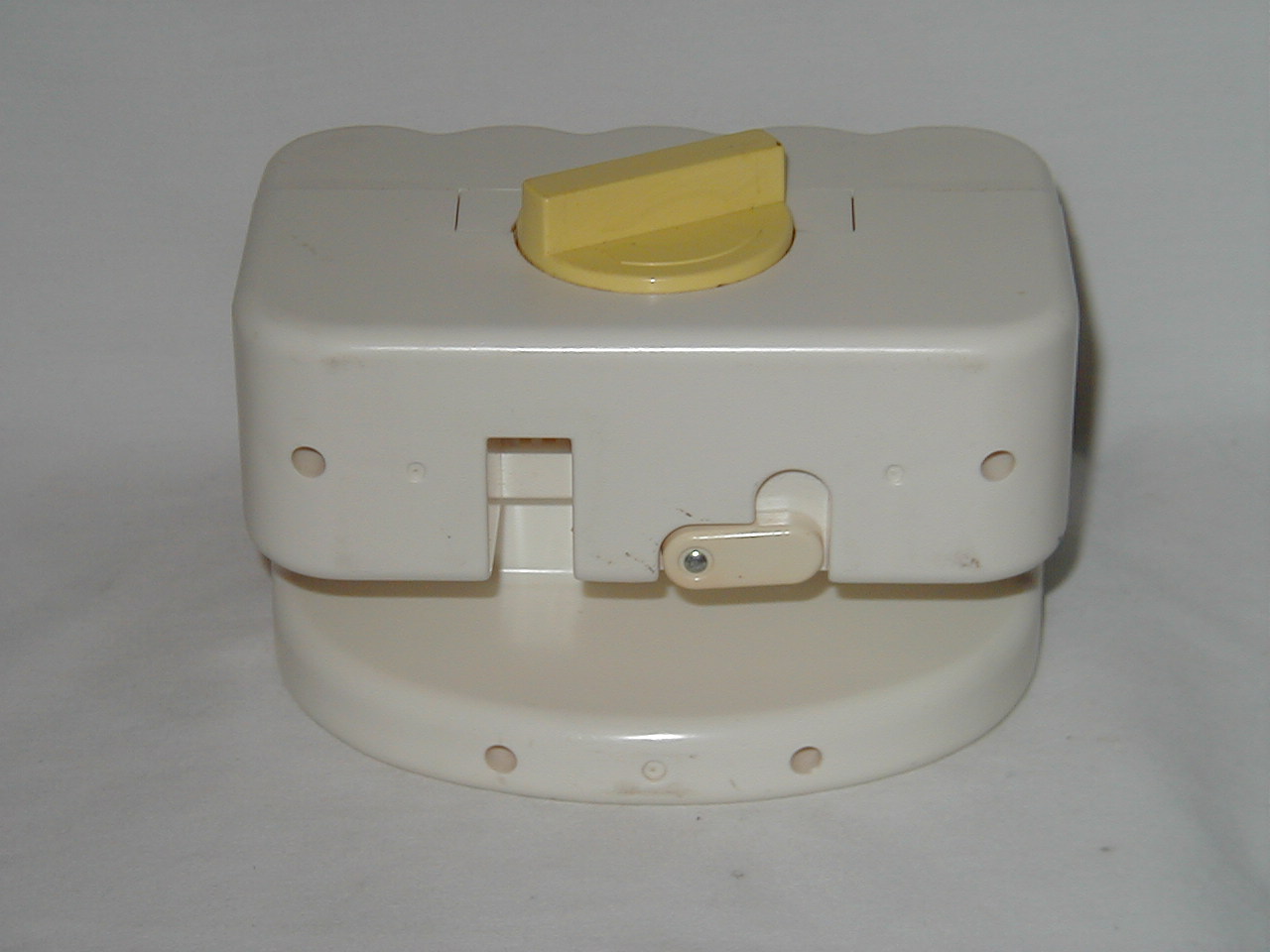 Turn plastic yellow knob in back. |