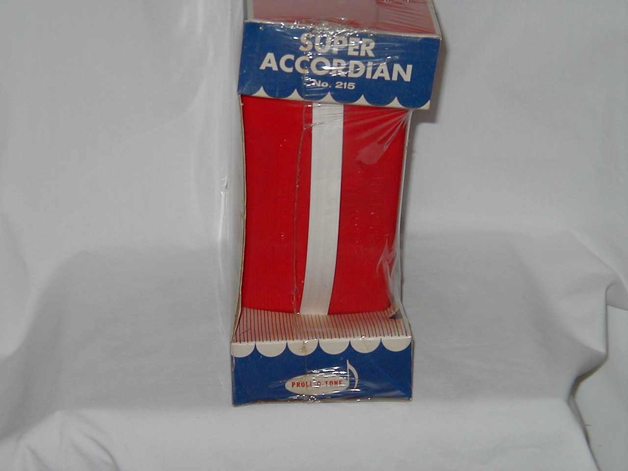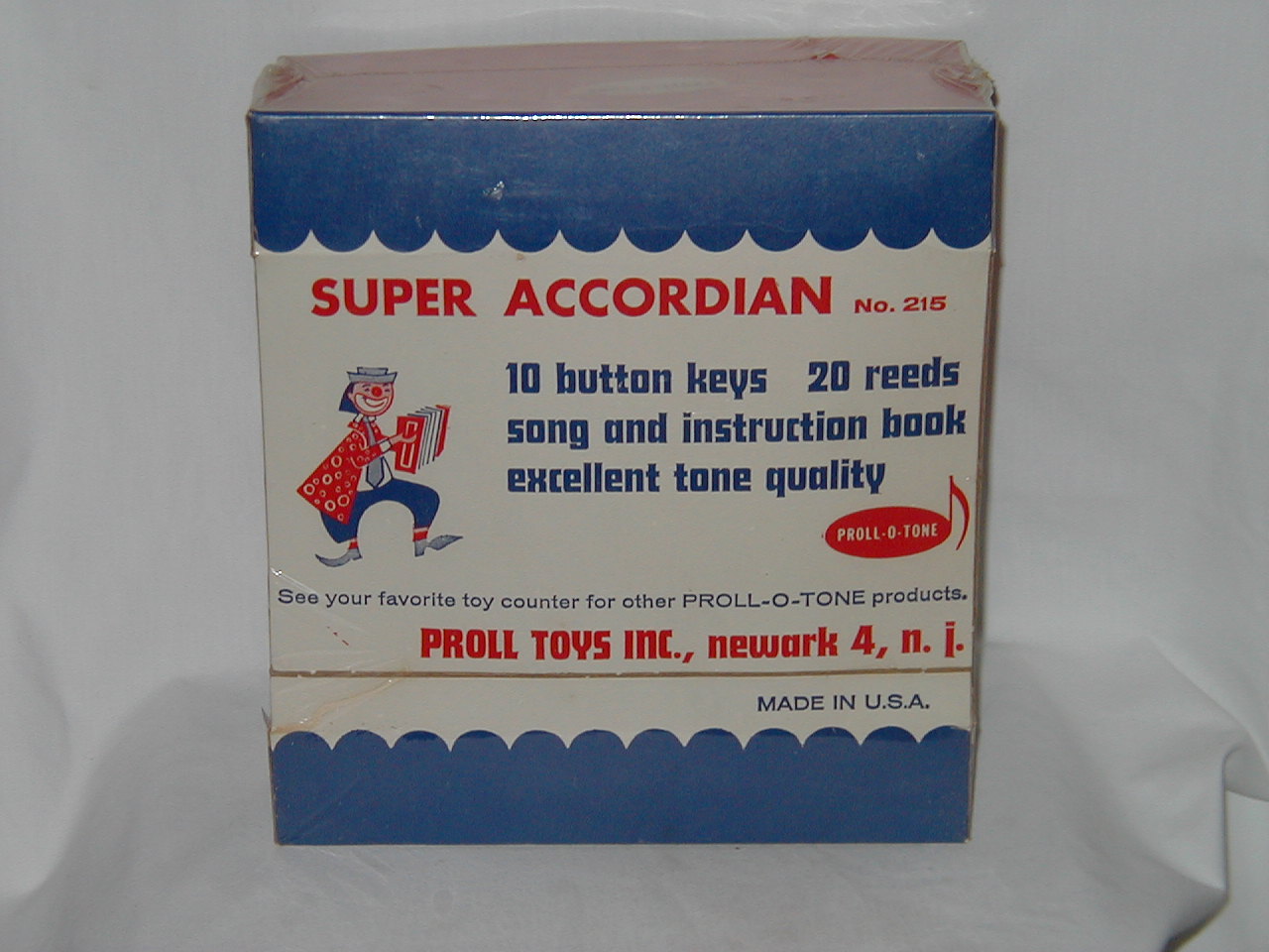 Another Proll-O-Tone Musical Toy. Super accordion No 215. 10 button keys. 20 reeds song and instruction book, excellent tone quality |