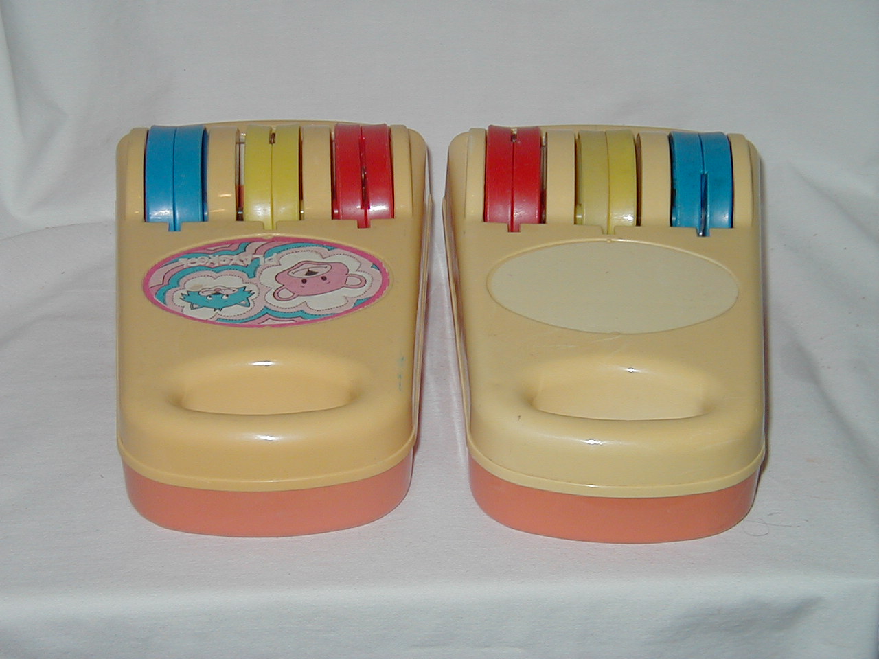 Both items are the same, bar for the small fact that the colors of the rollers are red/yellow/blue on one and inversed blue/yellow/red on the other; the last one mentioned has no top label, but same information in back.