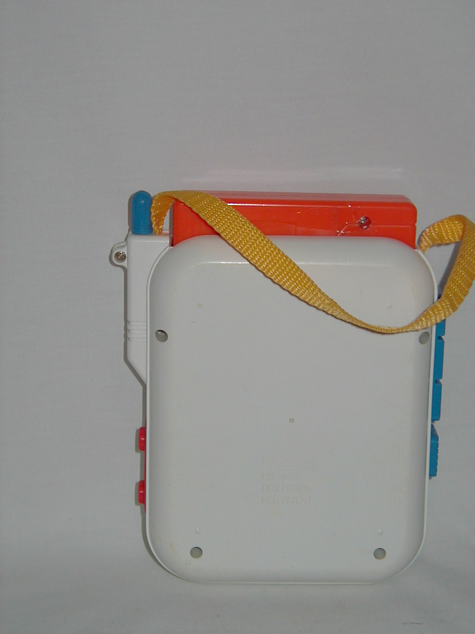 The red cartridge with the 'film' can be taken out and to disengage push in the lowest blue knob on the left side (see photo's sep. cartridge) The top blue buttons on the left side and red buttons on the right side do not move and have no function. The antenna can be pulled out or in, but has no other function. There is no on/off switch.. Athough the wording on the item says 'recorder', that is not the case. Works good.
