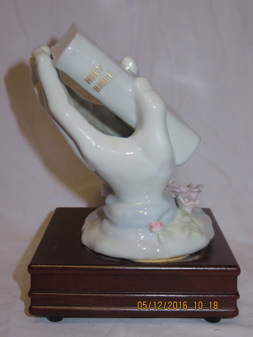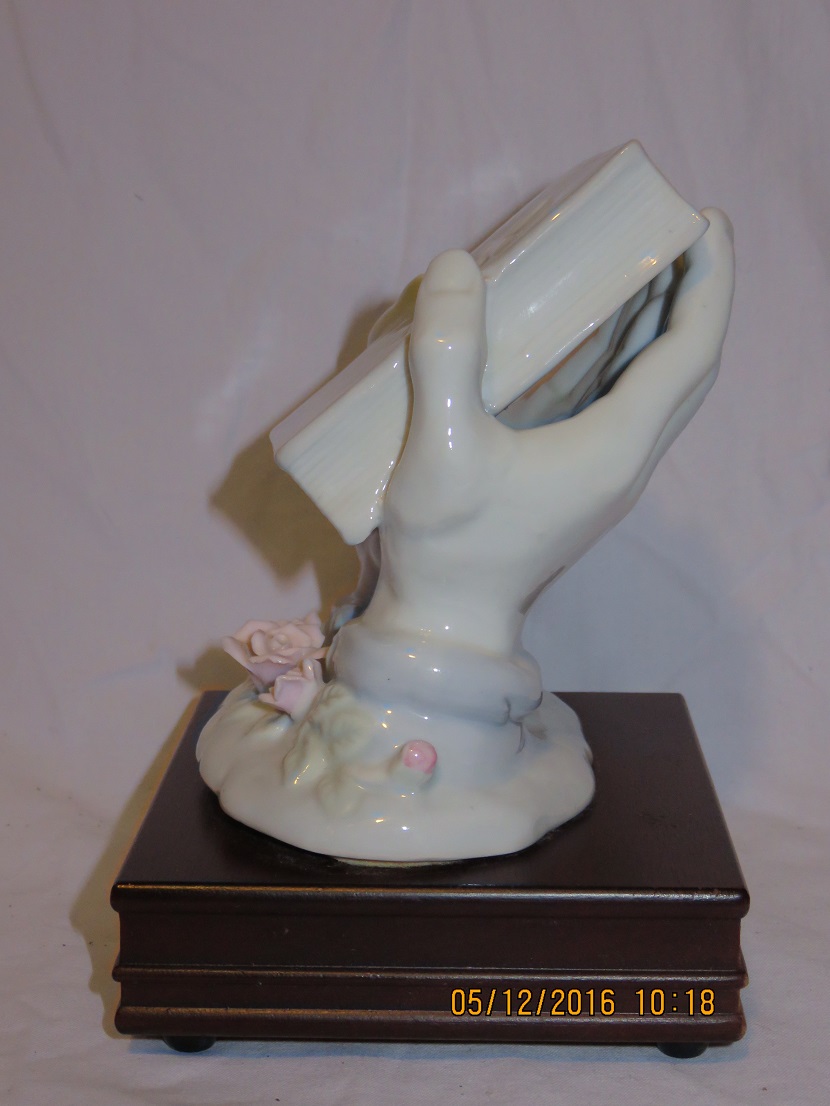 I can see 2 explanations for the name Erich Stauffer. One, he was a person that died and the item is in his memory. Two, it is the name of the very well-known designer of a.o. the Hummel figurines and others (Erich Sauffer being a nom de plume, not his real name). But his trademark crossed arrows not seen in this item.. Mostly worked for Arnart (Imports). |