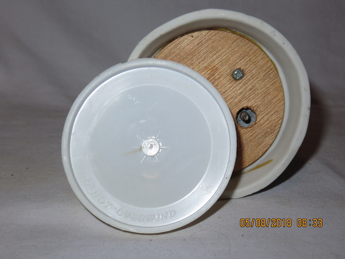 Yes, plastic, ' Caution!! Do not overwind '. |