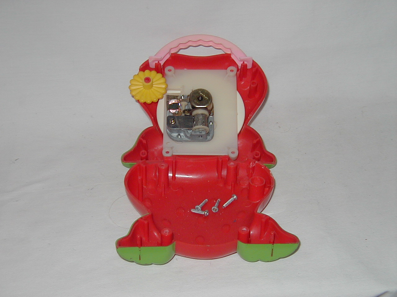 Strawberry Shortcake label in front. Yelllow knob on side is NOT an on/off switch, makes a pinging noise if turned, see photo # 5. |