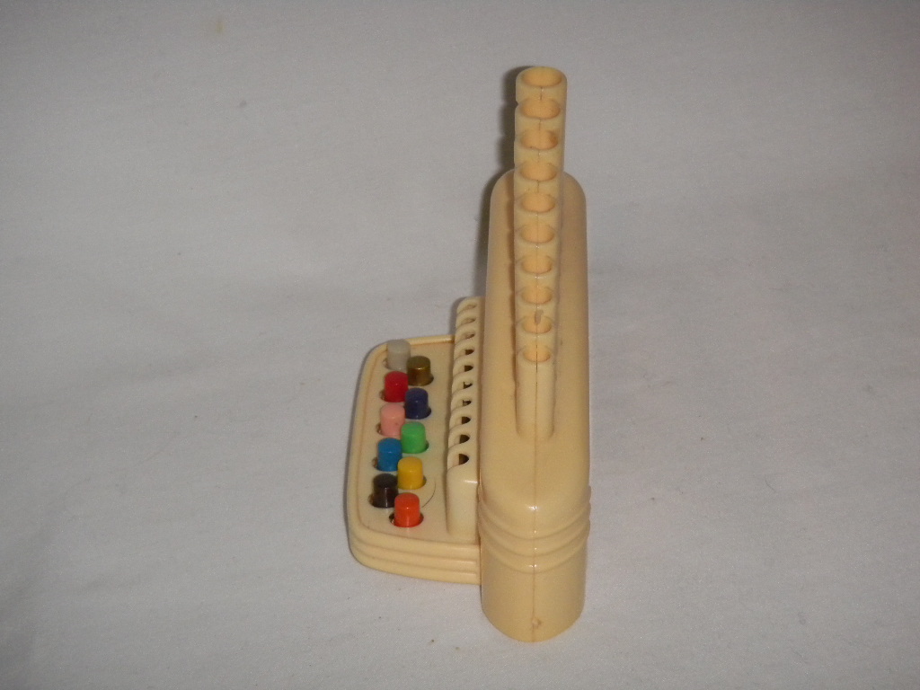 Full text on instrument: 'trade mark Proll-O-Tone Organ. Proll Toys, Inc. Newark, N.J.. Pat Nos 2416451, 2407312, 2373129. Other Pats. pendimng. Made in U.S.A.'. Mouse piece is detachable.